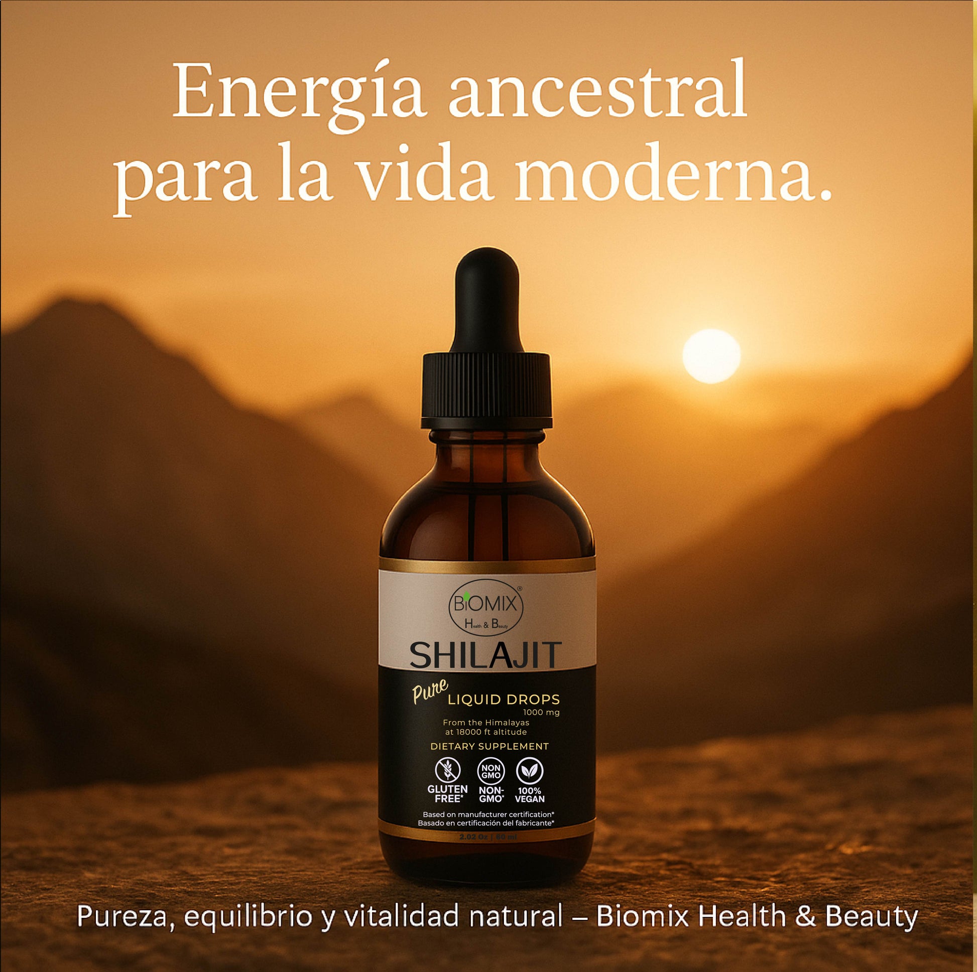 Biomix Health & Beauty Pure Shilajit Drops is a highly concentrated extract of Himalayan Shilajit resin, harvested at 18,000 feet and purified to deliver a supplement of maximum potency and bioavailability.