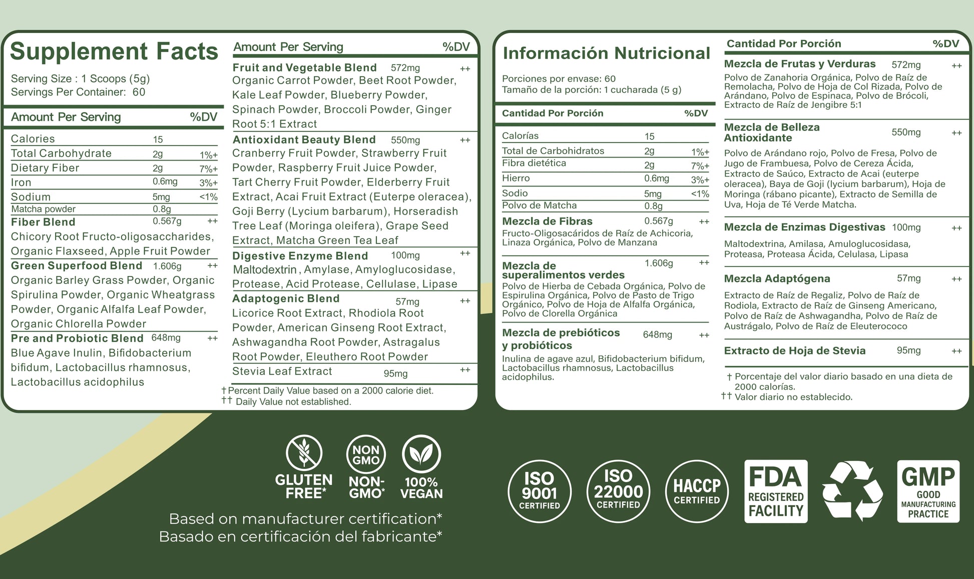 - +40 Superfoods : Includes a wide range of nutrient-dense ingredients to provide multifunctional benefits.